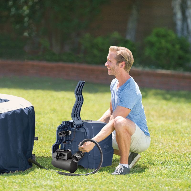 Les 140 diffuseurs de bulles d'air chaud du spa gonflable Intex PureSpa Blue Navy 4 places luxe peuvent être déclenchés depuis le panneau de commande incorporé au bloc technique de manière très intuitive. Avec un nouveau design plus compact et discret, il se fait discret derrière la paroi de votre spa Intex tout en restant à proximité de l'utilisateur pour conserver l'accès à ses fonctions en tout instant sans quitter votre spa. La couleur Blue Navy assure un rendu raffiné et contemporain, et lui permet de se fondre parfaitement à tous les environnements sans dénoter avec votre décoration.