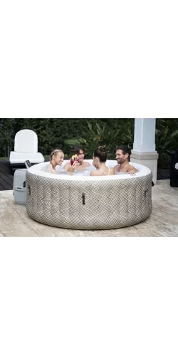 Le spa gonflable Madrid de la gamme Lay-Z Bestway est l'un des modèles les mieux dotés de sa catégorie. Son panneau de commande intègre une fonction innovante de contrôle à distance Wi-fi grâce à votre smartphone via l'application Bestway Smart Hub. Ainsi, vous pouvez télécommander les fonctions principales du spa que sont le réglage de la température de l'eau, la mise en route du chauffage, l'activation de la minuterie, la filtration de l'eau et le déclenchement du système de massage Airjet. Le design particulièrement élaboré et raffiné et affiche sur la paroi extérieure un splendide décor géométrique alliant la modernité aux inspirations des styles ethniques et bohèmes. Ce décor avec impression de motifs géométriques rappelant les parquets à chevrons, est un élément visuel fort qui s’intégrera parfaitement dans un intérieur aux tons proches, aux espaces extérieurs ou végétalisés.