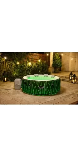 Le spa gonflable Hollywood est un produit phare de la gamme Lay-Z fabriquée par Bestway. Son design est le centre de toutes les attentions car il arbore un décore aux ondulations verticales contrastantes au style moderne et raffiné. L'éclairage d'ambiance LED multicolore fourni permet d'illuminer la structure et colorer l'ensemble au gré de vos envies. Idéal pour les soirées d'été ou les dîners romantiques, vous apprécierez cet accessoire qui accompagne vos envies et agrémente votre expérience de baignade et de relaxation. Pour que le confort d'utilisation soit complet, le spa Hollywood dispose d'une télécommande qui vous permettra d'ajuster le choix de couler et commander l'éclairage du spa à distance. Ce modèle haut en couleurs est aussi doté de 4 coussins appuis-têtes rembourrés, un accessoire de confort ajustable qui permettra une utilisation conviviale du spa avec un confort remarquable.