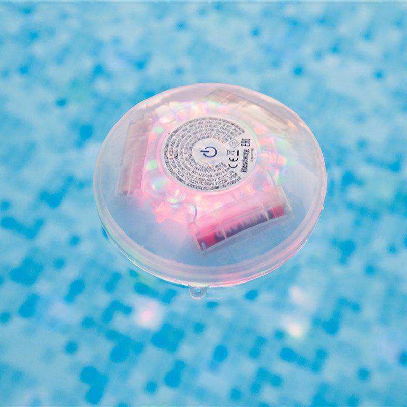 L'éclairage émis par cette lampe flottante Bestway est un vrai spectacle dans votre piscine, qu'elle soit d'ailleurs enterrée ou hors-sol. Les 4 Leds de couleur situées sur la partie inférieure de la lampe vont diffuser de la lumière colorée dans un diamètre allant jusqu'à 2,5m environ en fonction de la profondeur de votre piscine.
