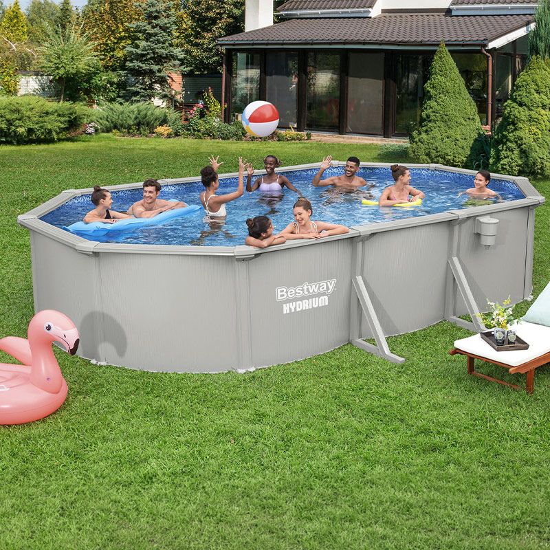 La piscine ovale avec paroi acier Bestway Hydrium 365 est déclinée dans cette dimension populaire de 6.10 x 3.66m. Robuste, elle est dotée de jambes de forces latérales et d'une paroi en acier renforcé contre la rouille et la corrosion, qui permettent de profiter d'une véritable piscine hors-sol 4 saisons que vous n'aurez pas besoin de démonter à la fin de chaque été. C'est l'un des meilleurs rapports qualité prix du marché sur ce segment, et c'est une piscine conçue pour durer.
