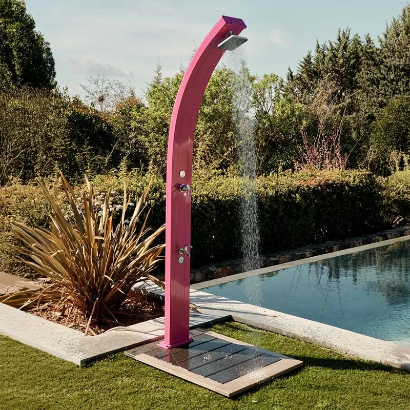 Véritable confort que de se rincer avant ou après la baignade, tout en réduisant l'impact environnemental et les coûts énergétiques. Son fonctionnement à énergie solaire sont l'assurance d'un impact écologique limité, sans compromis sur la qualité. L’eau contenue dans la douche peut monter jusqu’à 60°C par la puissance des rayons solaires; grâce au mitigeur intégré, vous profitez d'une douche à la température parfaite.