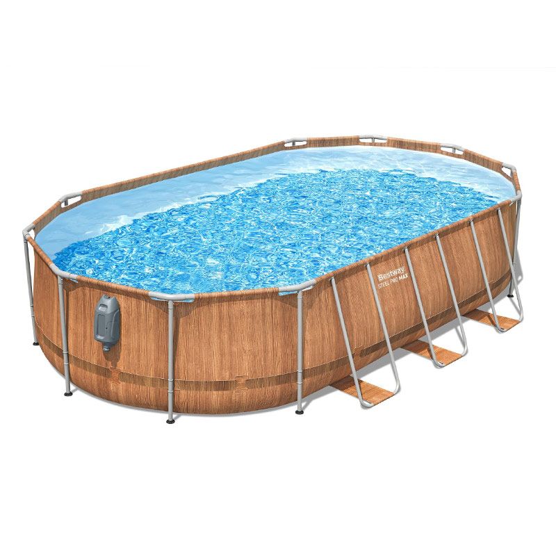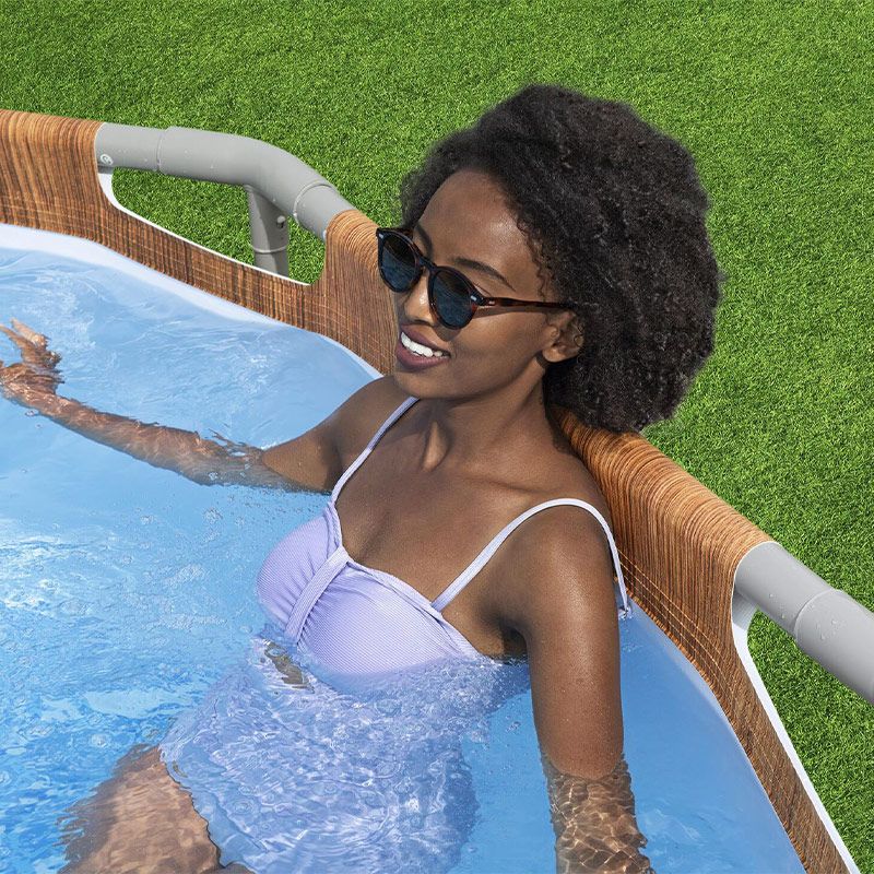 La piscine Bestway Steel Pro Max Comfort Jet ovale de 6,10 x 3,66 x h1,22m vous offre un grand espace de nage et des fonctionnalités innovantes comme la lumière LED intégrée et les buses massantes. Son imprimé imitation bois lui permettra de se fondre à merveille dans votre jardin, lui apportant une touche supplémentaire d'élégance et de naturel.