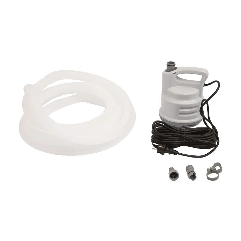 - Inclus : 1 groupe de pompe, 1 kit d'adaptateurs, 1 tuyau de 5m de long et 3,2cm de diamètre