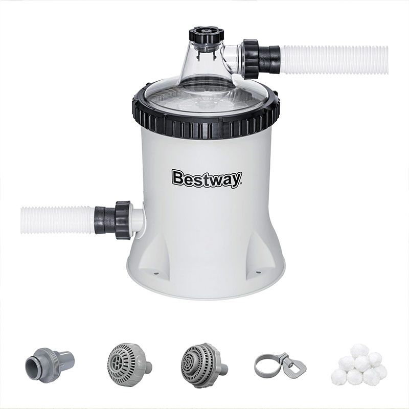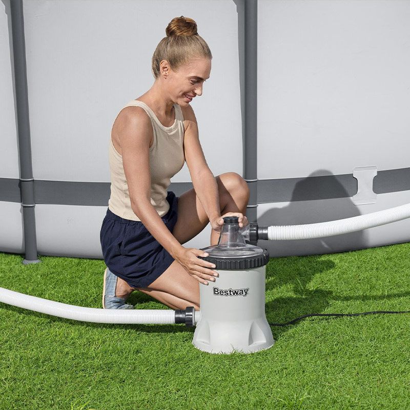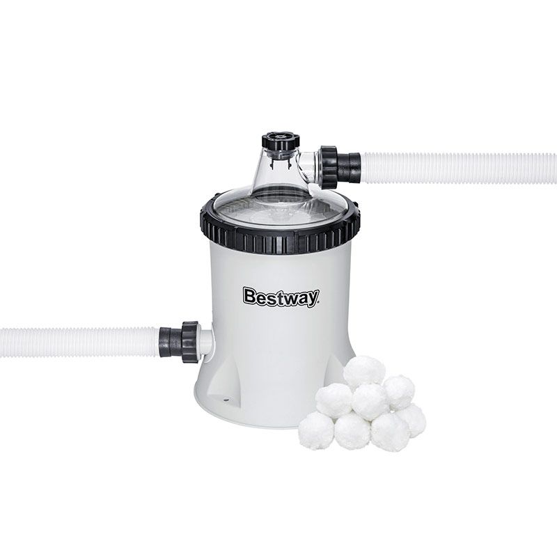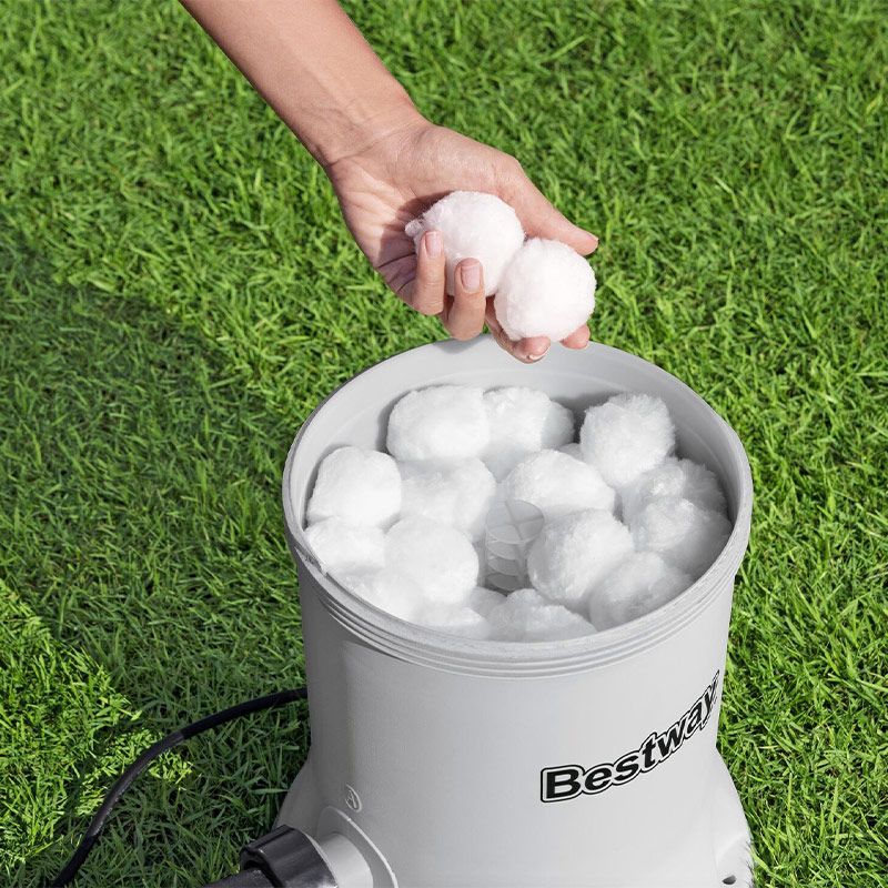 La pompe de filtration à balles filtrantes "Polysphere" développée par Bestway prend soin de la qualité de votre eau en utilisant un matériau non nocif et réutilisable comme média filtrant : les boules de filtration. Plus facile d'entretien qu'une filtration à cartouche et plus pratique qu'une filtration à sable, ce filtre innovant est particulièrement adapté aux piscines hors-sol tubulaires ou autoportées.