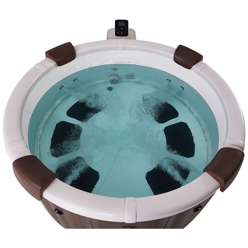 Entrez dans une nouvelle dimension du bien-être avec le MSpa Rova, un spa rigide rond conçu pour 4 à 6 adultes. Conçu avec des assemblages de panneaux aspect bois faciles à monter, La structure de forme arrondie assure une répartition équilibrée de la pression de l'eau et offre une grande durée de vie.