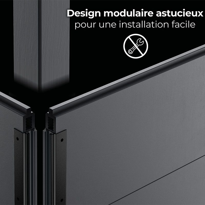 La structure Avant Garde Nova est composée de panneaux complets qui sont bien plus pratiques et rapides à assembler que des madriers de bois et qui ne nécessiteront pas d'outils particuliers. Ces panneaux doivent être assemblés dans des glissières et les rails d'accrochage intégrés aux margelles vous permettront de gagner en rapidité pour le montage. Vous n'aurez pas de difficulté à suspendre le liner puisqu'il n'y aura pas de rails d'accrochage à visser sur le pourtour comme c'est le cas pour les piscines en bois traditionnelles. Votre piscine composite Avant-garde Nova vous sera livrée en kit complet incluant filtration à sable performante, échelles intérieures et extérieures, mais aussi un accessoire supplémentaire particulièrement malin appelé Smart Plug permettant de commander la filtration depuis son smartphone connecté.
