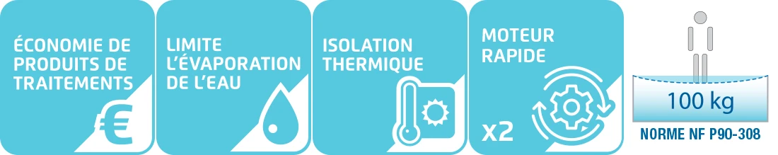 Isolation thermique performante : en déroulant le volet en fin de journée, le tablier va recouvrir toute la surface de l'eau et agir comme une véritable couverture isotherme permettant de conserver au mieux la chaleur de l'eau au cours de la nuit. C'est un accessoire particulièrement important pour les utilisateurs de pompe à chaleur dont le fonctionnement pourra être réduit grâce à l'utilisation d'un volet, couverture particulièrement efficace pour remplir cette fonction de protection thermique.