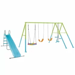 Portique Intex 5 agrès nid d'oiseau, face a face, anneaux, 2 balançoires et toboggan