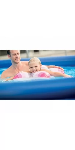 La gamme Easy Set offre la possibilité de disposer d’une piscine à moindre frais tout en conservant une excellente qualité. La piscine hors-sol autostable Intex Easy Set 3,96 x h0,84m est très facile et très rapide à installer : il suffit de gonfler le boudin et la piscine se monte en remplissant. De plus, avec son liner triple épaisseur, le piscine Easy Set est très résistante.