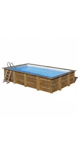 Fabriquée en France, la piscine en bois rectangulaire Sunbay Evora 6,20 x 4,20 x h1,33m peut être installée hors-sol, semi-enterrée ou enterrée grâce au traitement autoclave de son bois. Elle est livrée en kit complet avec filtration à sable complète, échelle bois extérieure, échelle inox intérieure, feutre de protection, plaques sous margelles, caches angles inox...