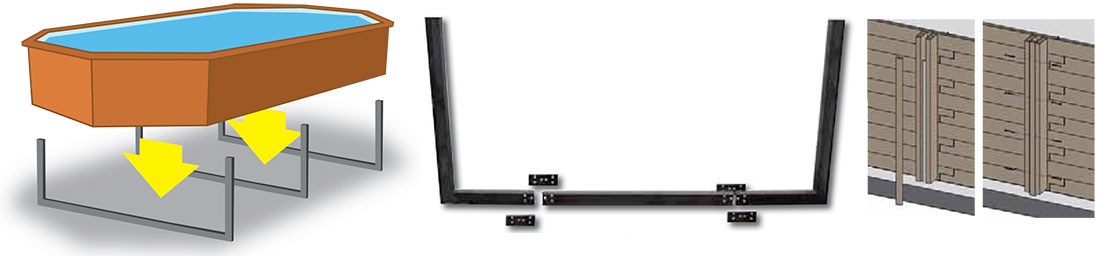 Afin de renforcer le bassin, la structure est équipée de berceaux métalliques : les berceaux métalliques sont à noyer dans la dalle béton. Les berceaux reçoivent un habillage bois pour une intégration et un esthétisme assuré.